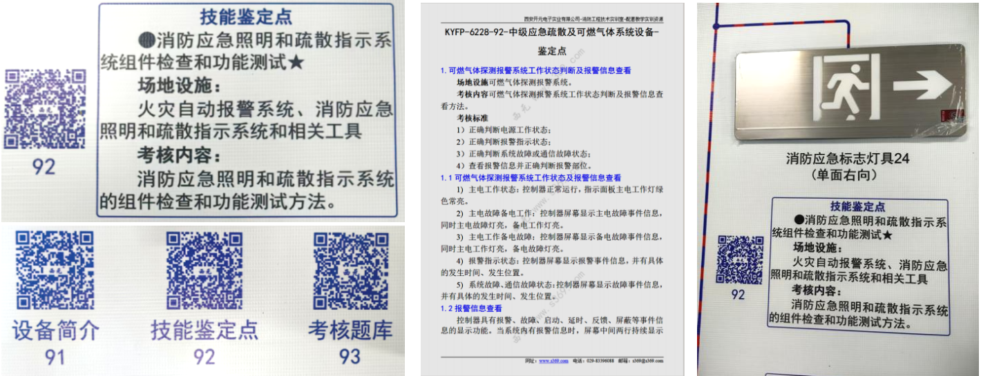 本硬件设备中,专门增加了大量消防职业技能鉴定点内容,以及扫描二维码查看更多专业知识,鉴定点内容包括场地设施、考核内容、考核标准、操作步骤等。示例如下。