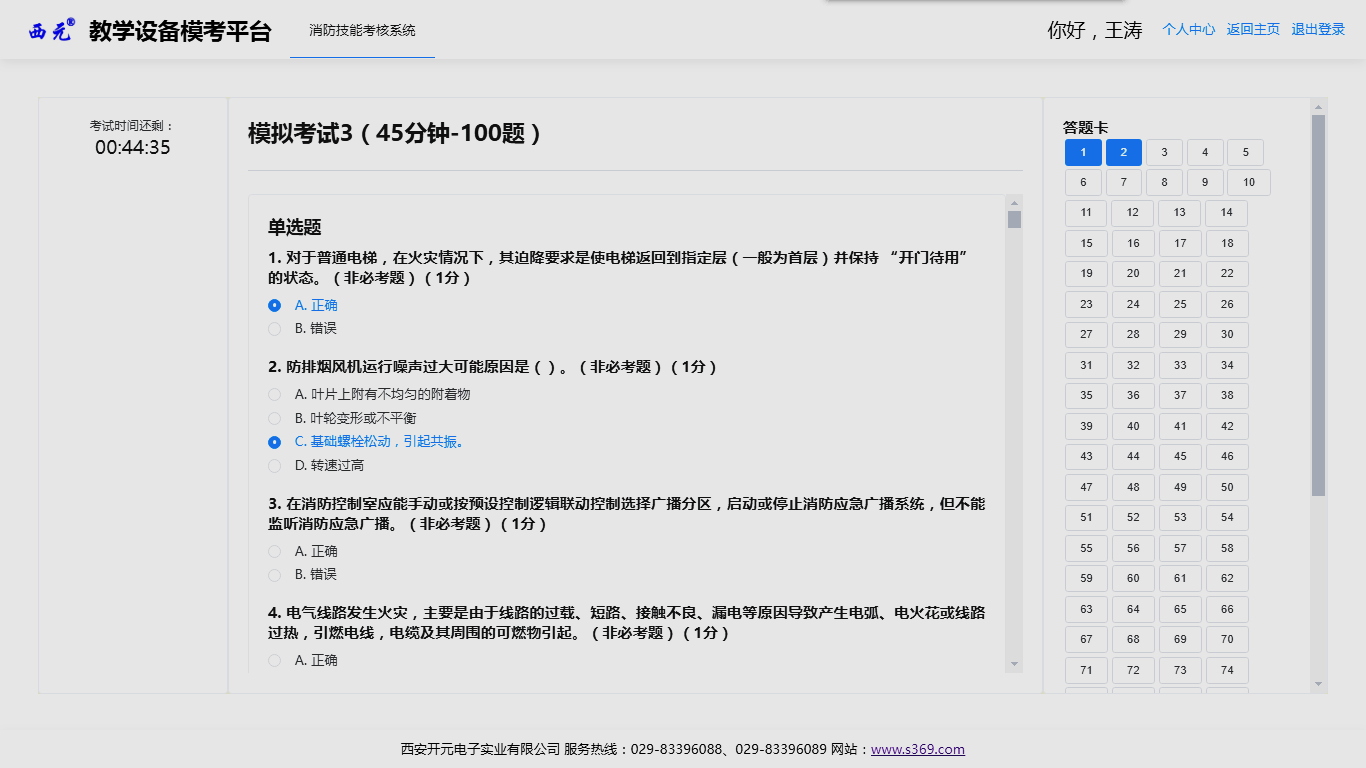图9 西元“设备模考操作平台”模拟考试答题界面