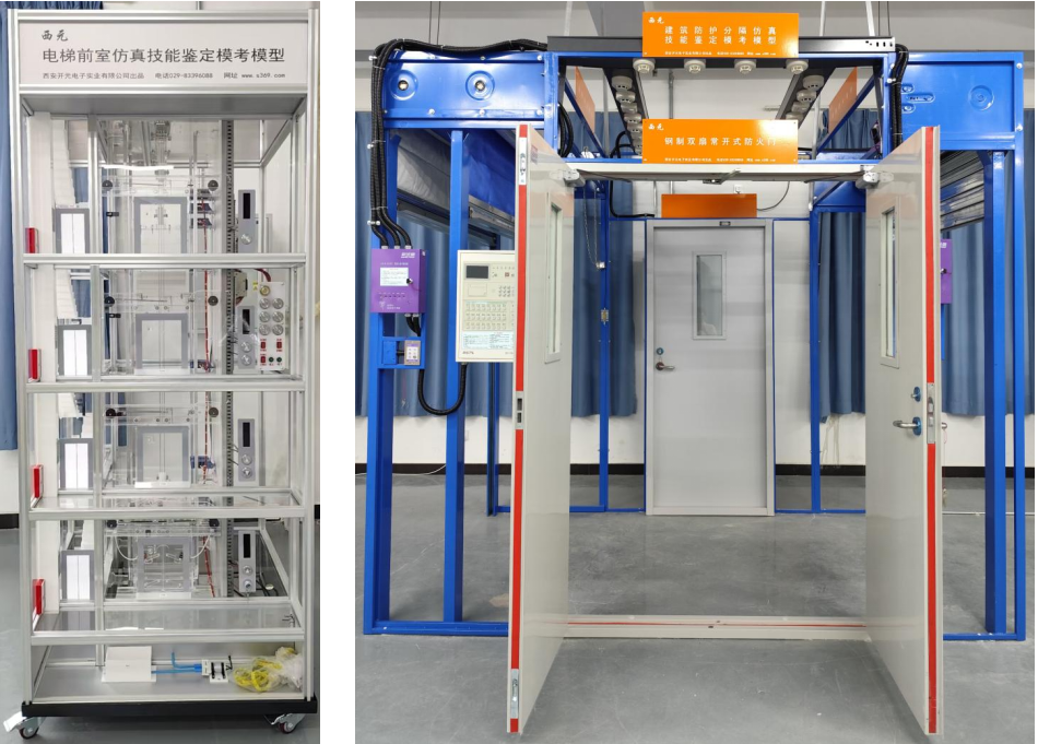 实训室主要设备为模考专用设备,包括防排烟设施系统模考模型、电梯前室仿真技能鉴定模考模型、建筑防护分隔仿真技能鉴定模考模型,满足技能鉴定训练需求。