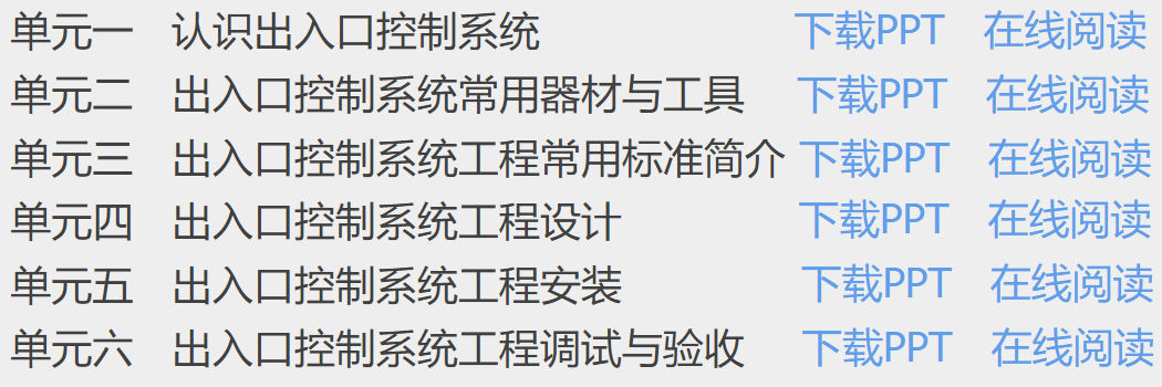 六、《出入口控制系统工程安装维护与实训》教材目录简介