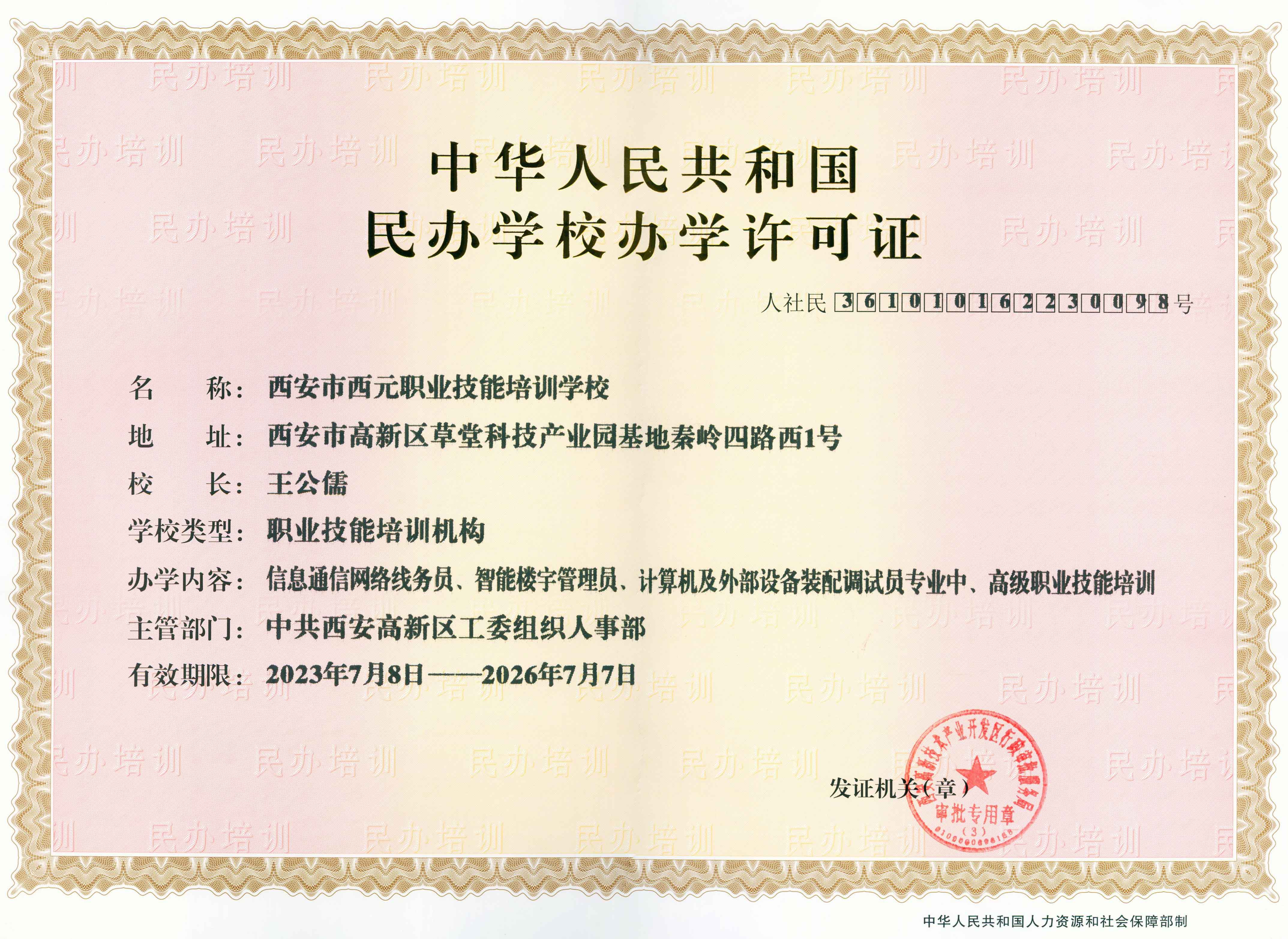 西安市西元职业技能培训学校(简称西元技校)由